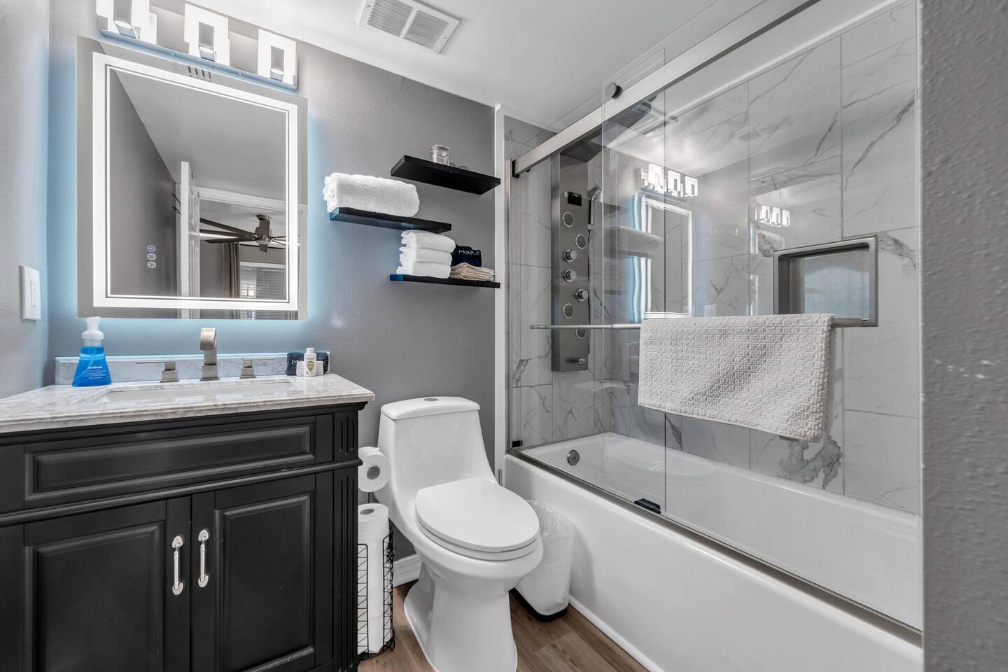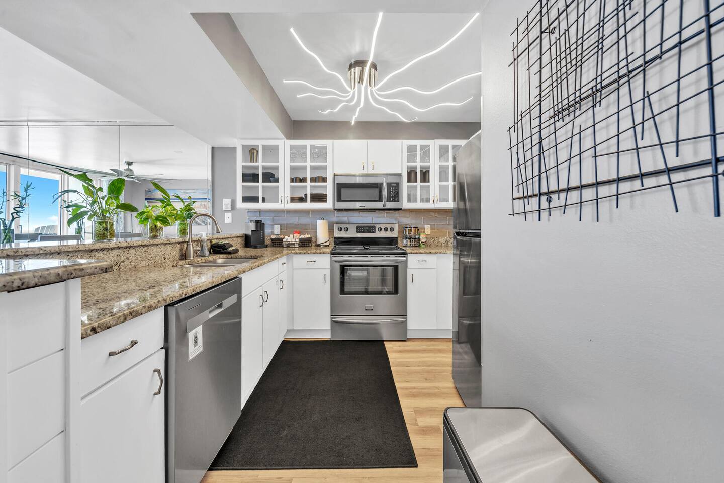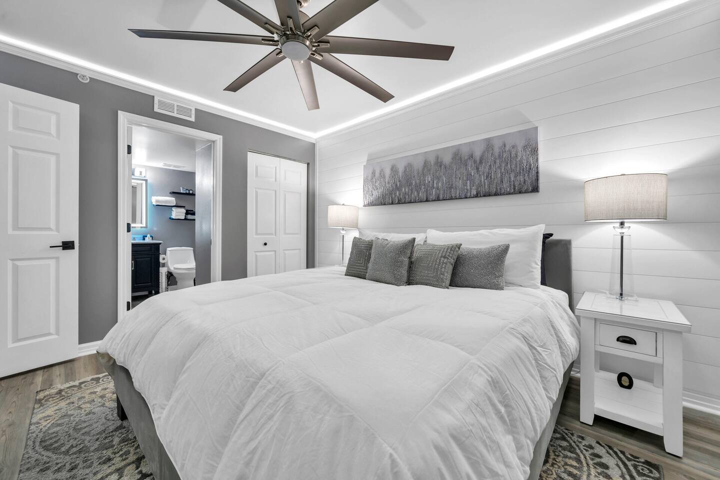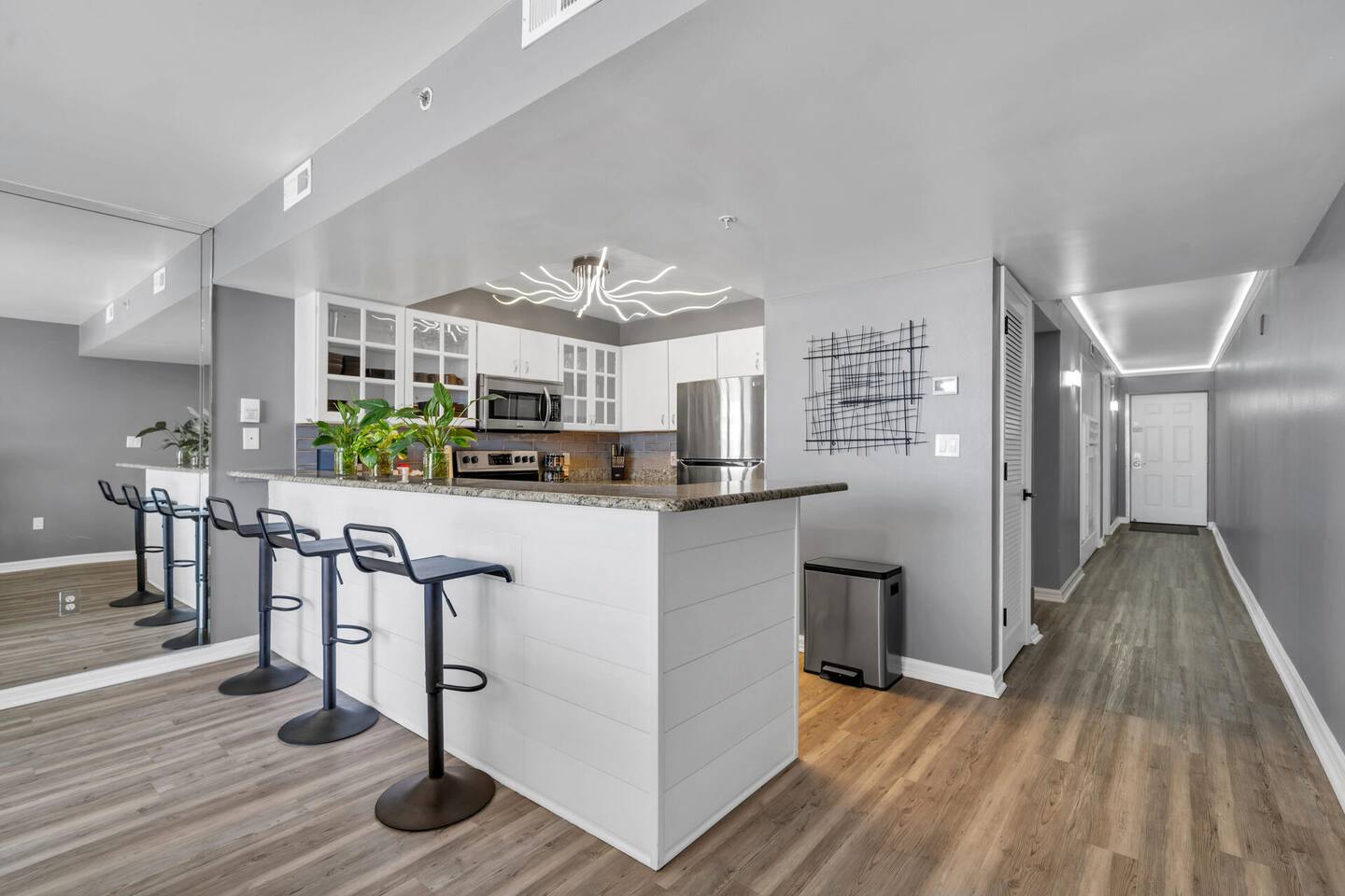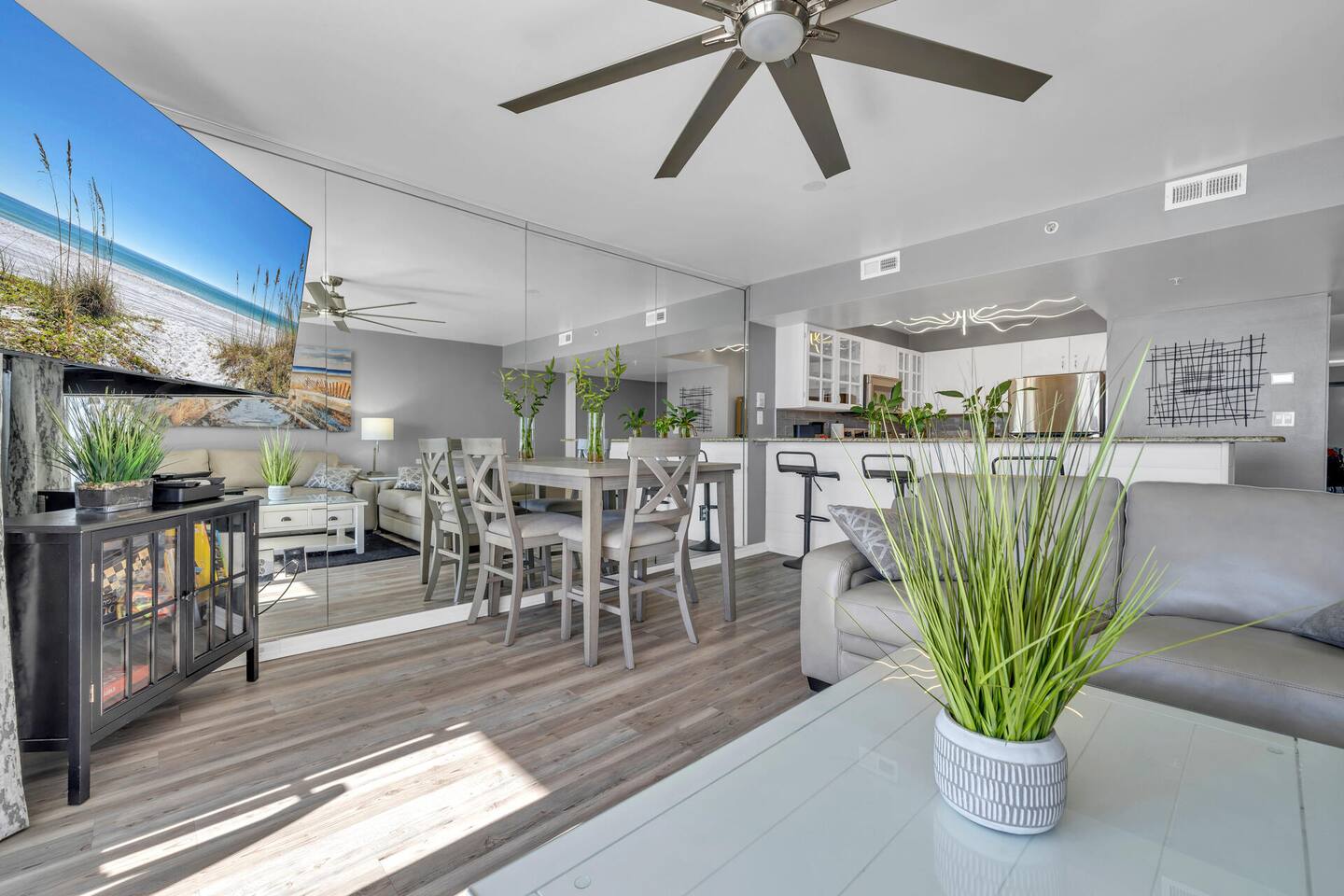 • RIGHT ON THE BEACH! Cannot get any closer to the beach than this unit • Sophisticated 1‑bedroom, 2‑bath layout accommodating up to 6 guests (6 adults will be tight, adults with kids are more comfortable • Master bedroom with a luxurious king bed • Hallway alcove with (2) custom built‑in bunk beds with own TV’s • Living room with a premium queen sleeper sofa • Newly renovated, open‑concept design with high‑end finishes • Fully stocked kitchen featuring bar seating and modern appliances • Private balcony showcasing sweeping, unobstructed Gulf views • Balcony has comfortable, smooth gliders • Located near the elevators for added convenience but may be noisy from foot traffic at times • 867 sq ft of thoughtfully designed living space