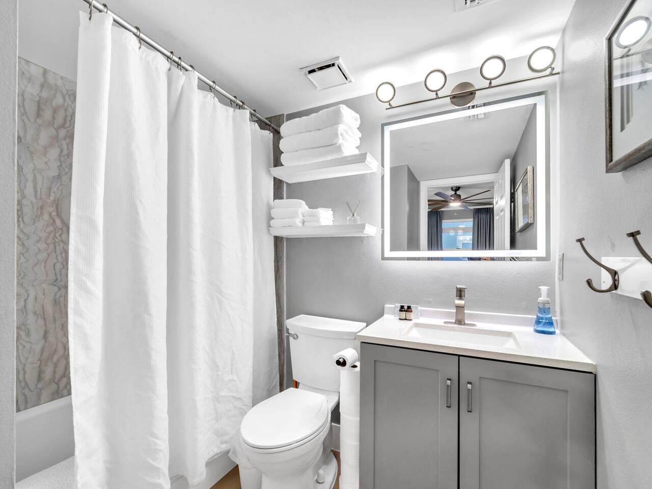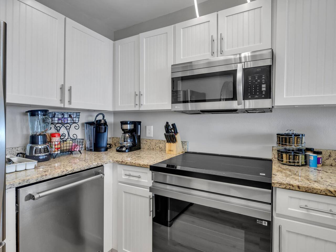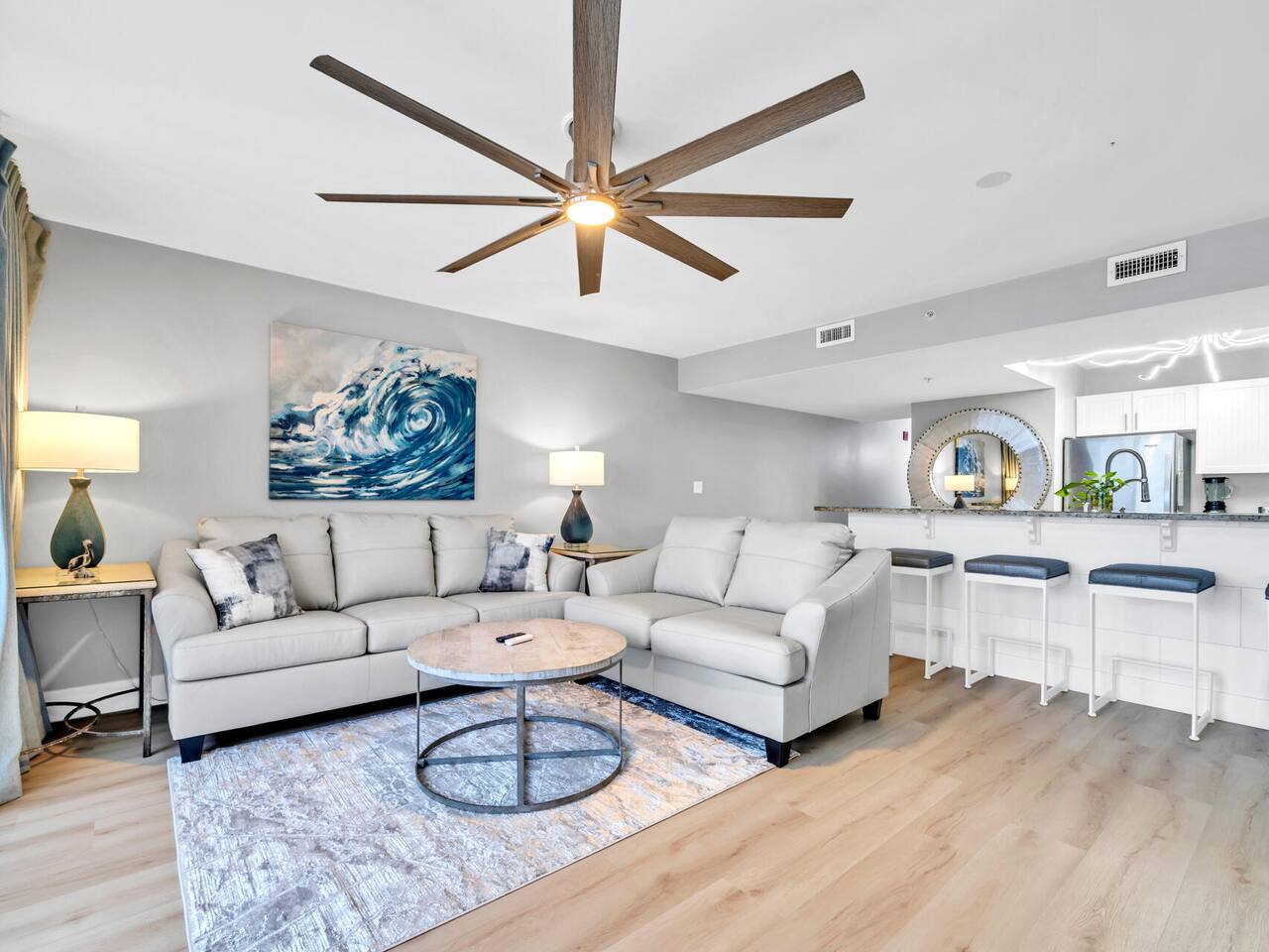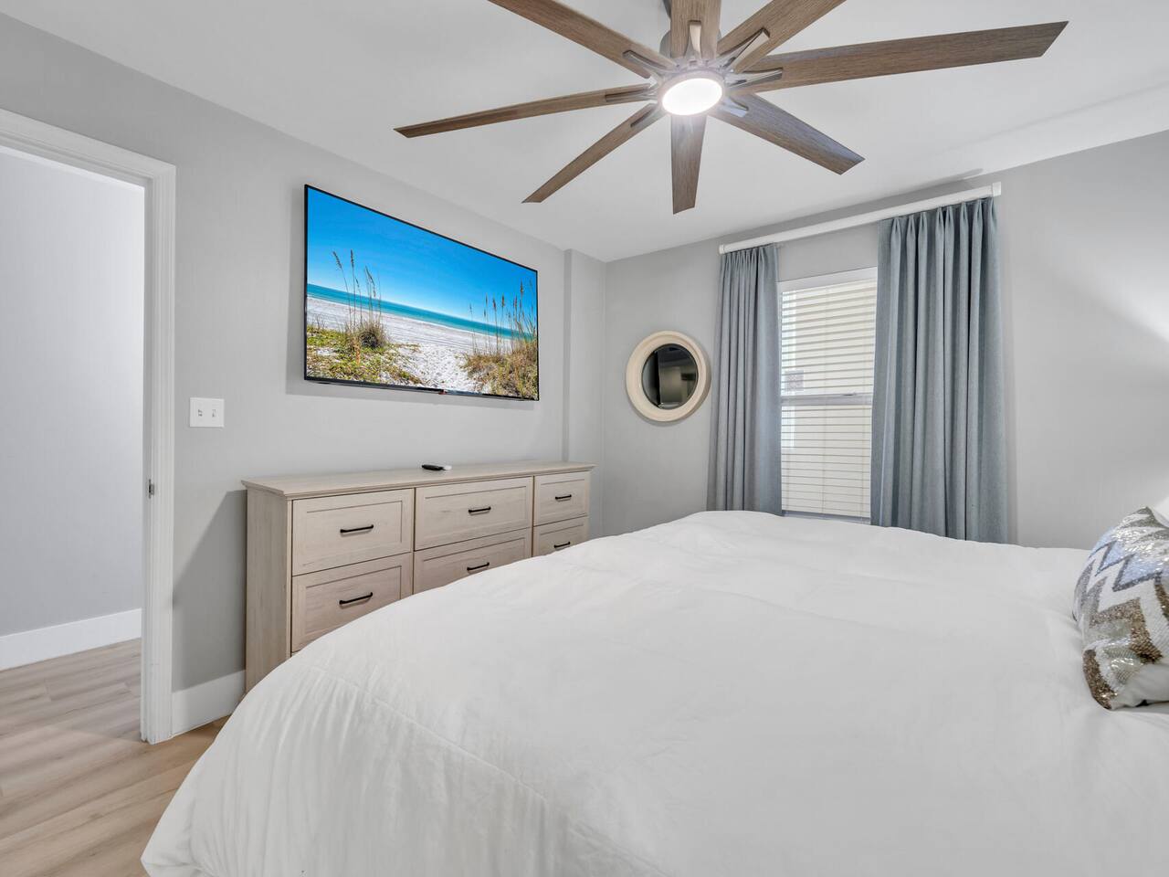 • RIGHT ON THE BEACH! Cannot get any closer to the beach than this unit • Sophisticated 1‑bedroom, 2‑bath layout accommodating up to 6 guests (6 adults will be tight, adults with kids are more comfortable • Master bedroom with a luxurious king bed • Hallway alcove with (2) custom built‑in bunk beds with own TV’s • Living room with a premium queen sleeper sofa • Newly renovated, open‑concept design with high‑end finishes • Fully stocked kitchen featuring bar seating and modern appliances • Private balcony showcasing sweeping, unobstructed Gulf views • Balcony has comfortable, smooth gliders • Located near the elevators for added convenience but may be noisy from foot traffic at times • 867 sq ft of thoughtfully designed living space • Although there is a washer/dryer in the unit, it is one of those wash to dry within the same cycle. It has a ventless dryer so it does not completely dry. It is very small and only capable of doing very small loads. Each load will take about 4 hours to run. Coin-operated washer and dryer for medium or large loads are also available on each floor.