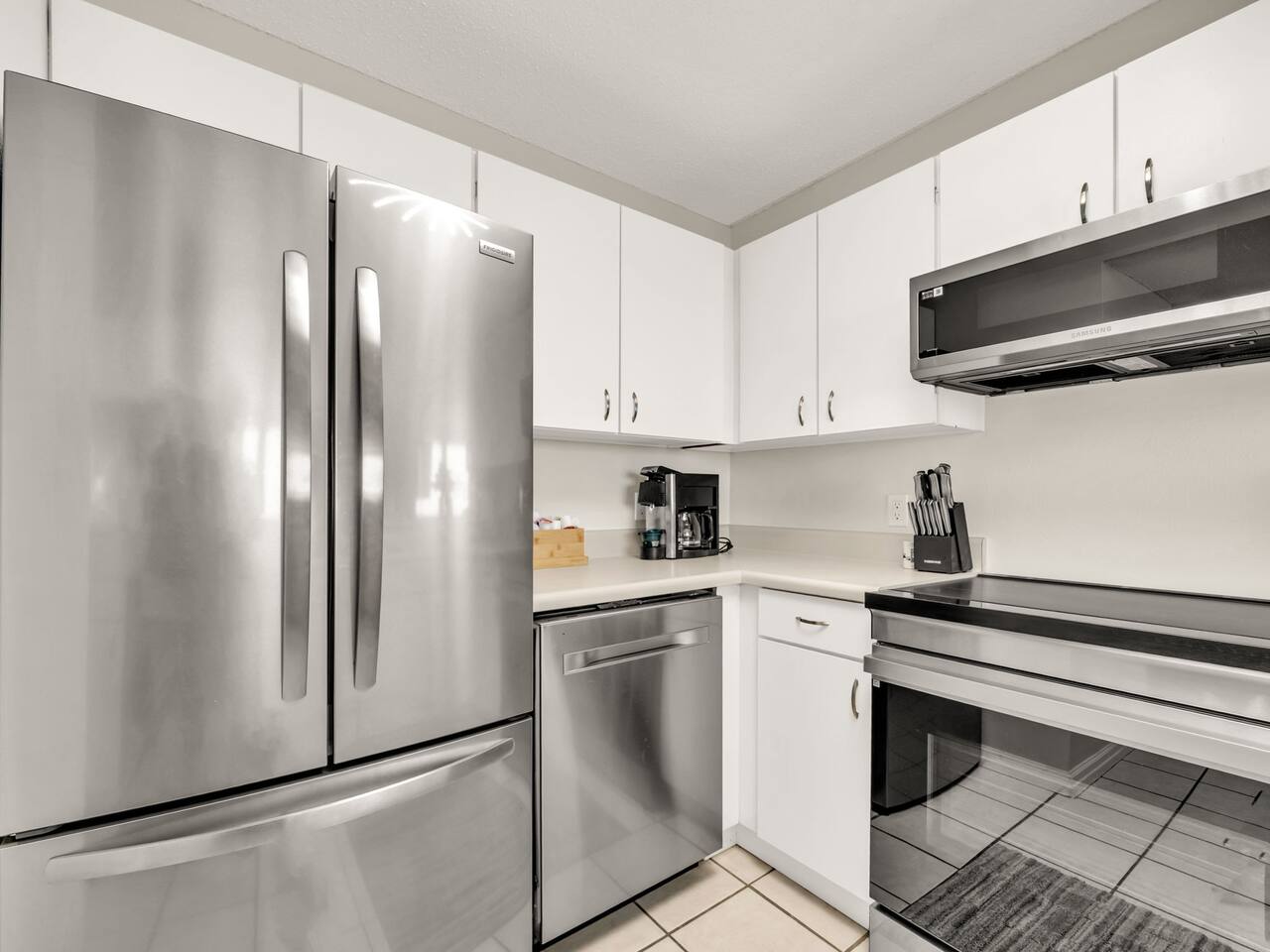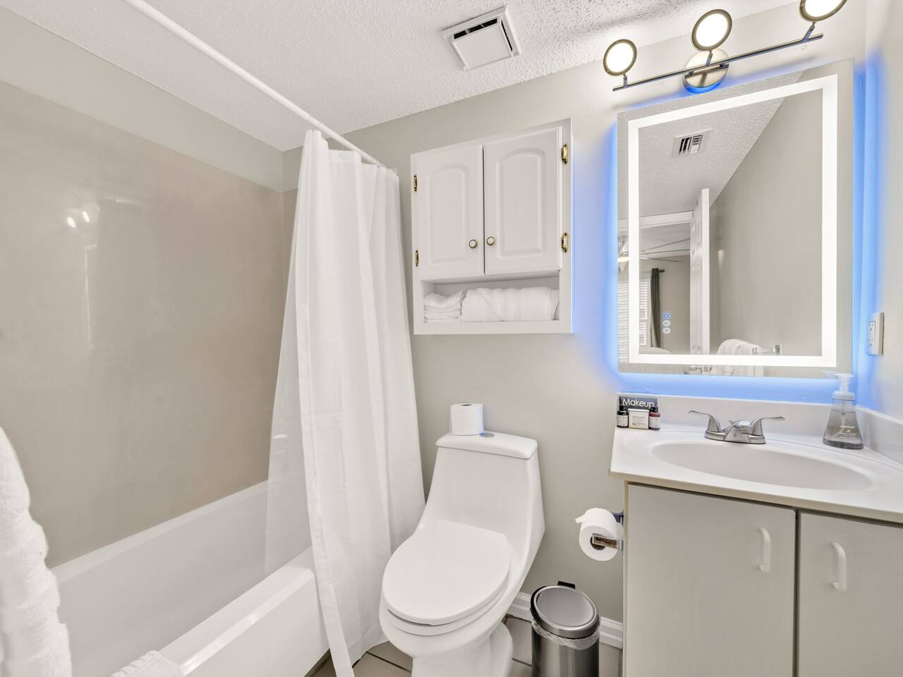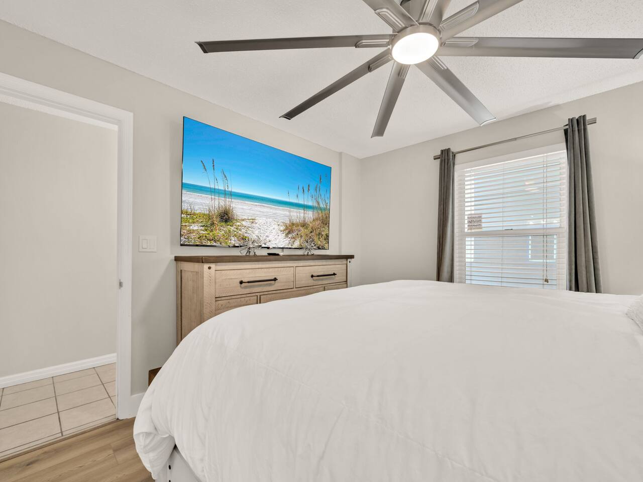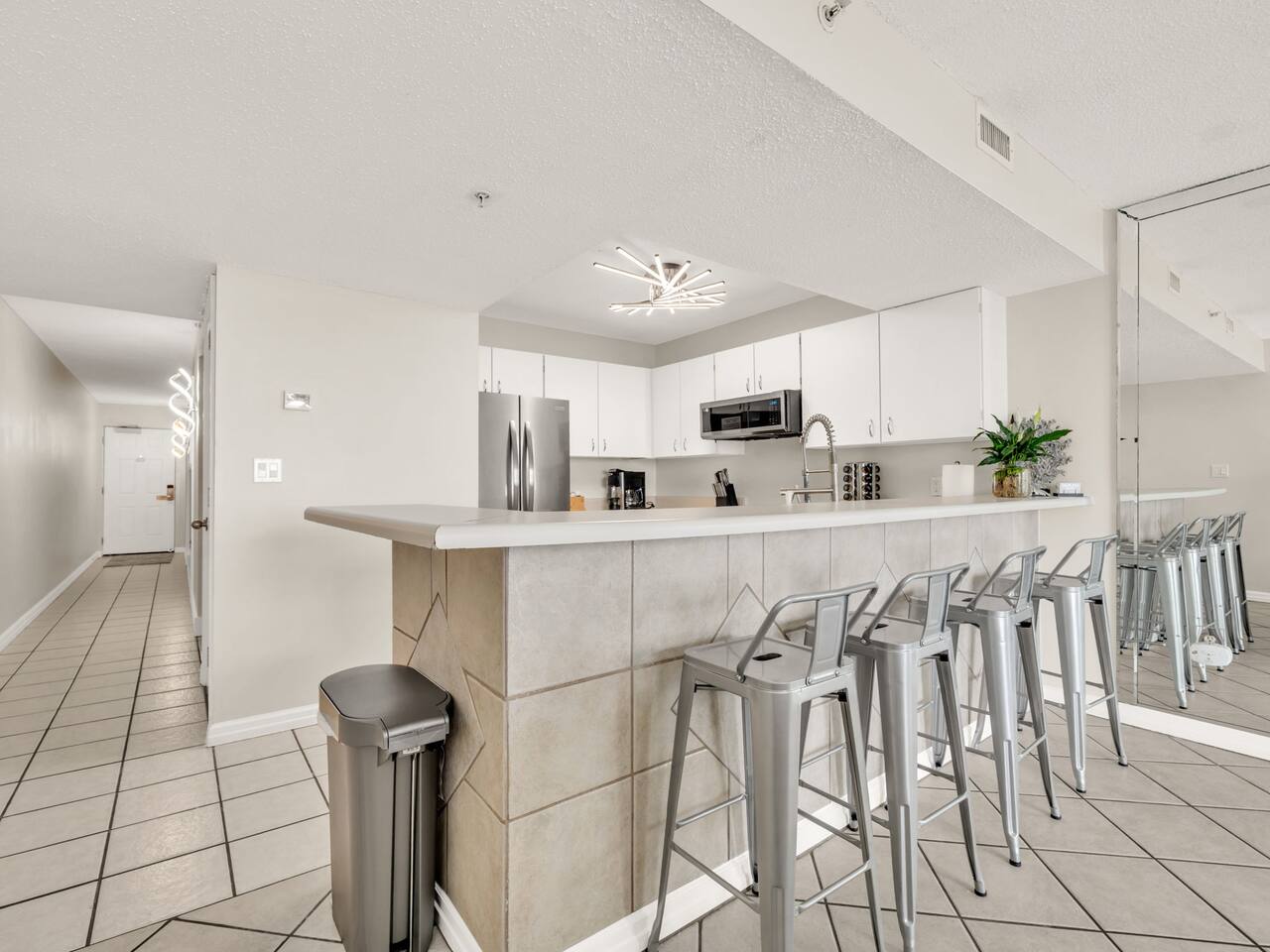 • RIGHT ON THE BEACH! Cannot get any closer to the beach than this unit • Sophisticated 1‑bedroom, 2‑bath layout accommodating up to 6 guests (6 adults will be tight, adults with kids are more comfortable • Master bedroom with a luxurious king bed • Hallway alcove with (2) custom built‑in bunk beds with own TV’s • Living room with a premium queen sleeper sofa • Newly renovated, open‑concept design with high‑end finishes • Fully stocked kitchen featuring bar seating and modern appliances • Private balcony showcasing sweeping, unobstructed Gulf views • Balcony has comfortable, smooth gliders • Located near the elevators for added convenience but may be noisy from foot traffic at times • 867 sq ft of thoughtfully designed living space • Although there is a washer/dryer in the unit, it is one of those wash to dry within the same cycle. It has a ventless dryer so it does not completely dry. It is very small and only capable of doing very small loads. Each load will take about 4 hours to run. Coin-operated washer and dryer for medium or large loads are also available on each floor.